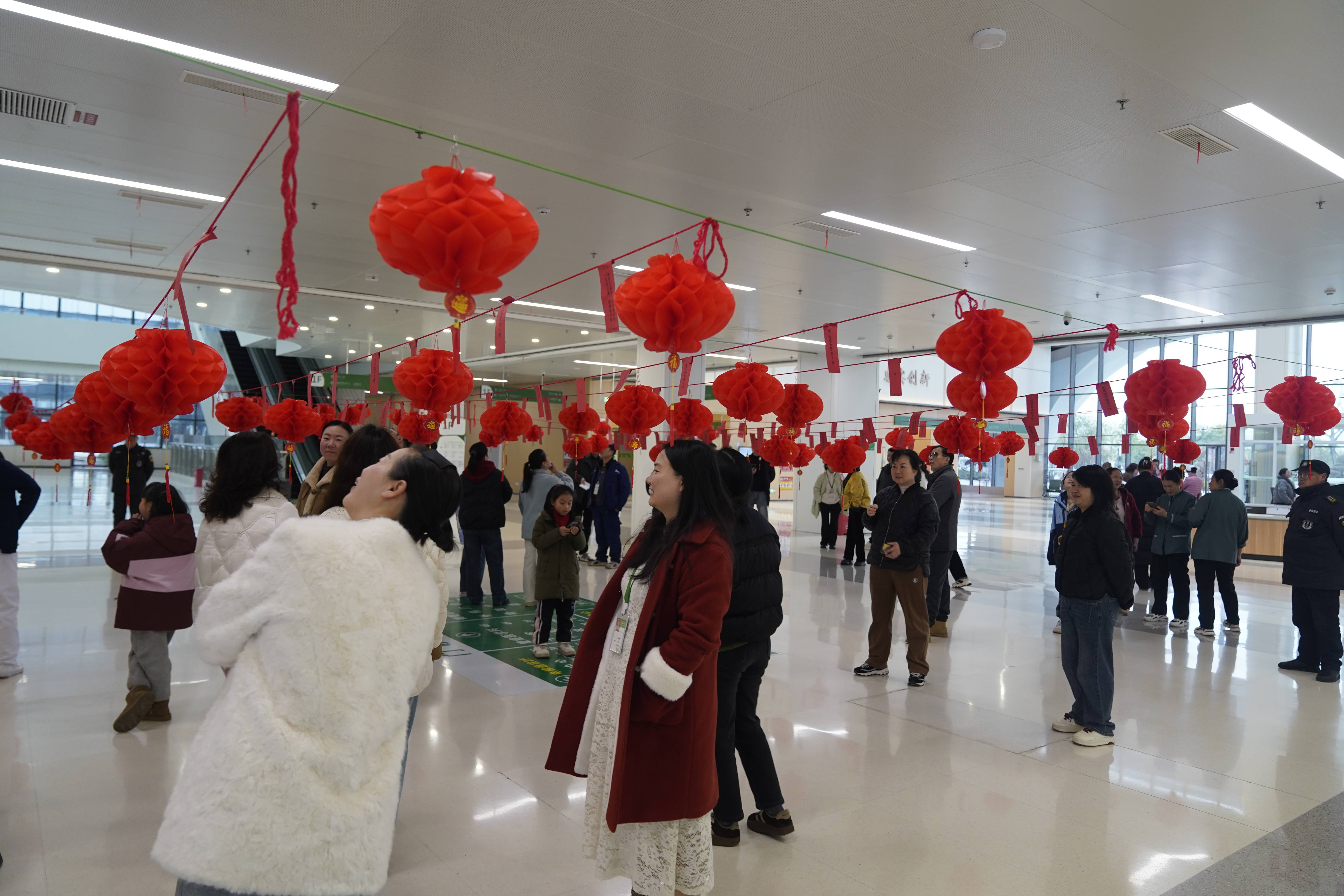 上午9时,医院门诊大厅内,红灯笼高高挂起,灯谜纸条随风轻扬,洋溢着浓厚的节日氛围。随着活动正式开始,精心准备的300道妙趣横生的灯谜吸引了众多职工、患者及家属驻足参与。灯谜内容丰富多样,涵盖了医院文化、文学历史、科普知识、健康常识以及生活小窍门等,既有“烧脑”的趣味,也有“涨知识”的收获。大家或凝神思考,或相互讨论,现场欢声笑语不断。猜对灯谜的职工和患者高兴地领取到了医院准备的各类精美礼品。与此同时,医院食堂还特别准备了50余份热气腾腾的汤圆,赠送给参与活动的患者和职工。