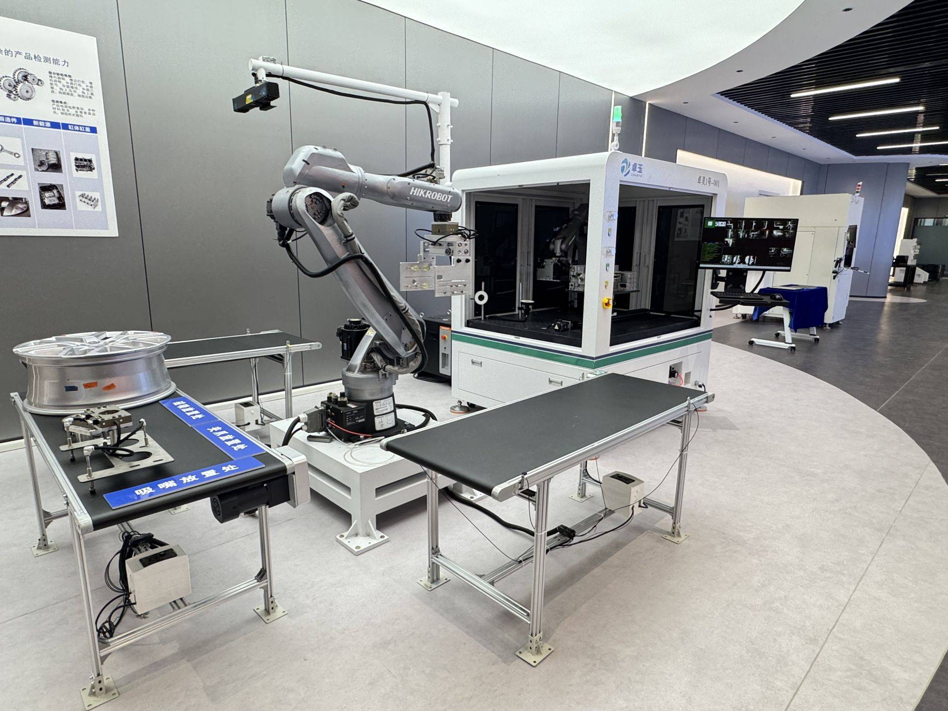 “这套柔性检测设备是我们自主研发的核心产品之一。”黄伟介绍,“它采用2D与3D结合的快速拍照扫描方式,检测准确率可达99%以上,相较传统设备效率更高、覆盖更全,特别适用于壳体、箱体、汽车轮毂等复杂工件,有效弥补传统检测盲区,确保高质量检测结果。”目前,企业核心业务已形成智慧工厂整体解决方案、AI视觉检测设备、新型矿物铸件新材料三大战略板块,依托技术优势为客户构建从原料入库到成品出库的全流程自动化闭环。