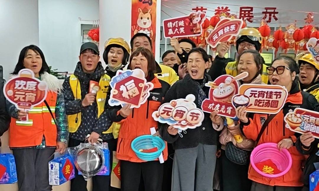 随后的趣味猜灯谜环节,一条条兼具民俗韵味与生活趣味的谜面吸引大家踊跃参与。有人凝神思索,有人轻声交流,猜中谜底的职工现场兑换了实用又暖心的小礼品,抢答声与欢笑声此起彼伏,其乐融融。紧接着,一碗碗热气腾腾的汤圆被送到大家手中,软糯香甜入口,温暖了奔波在街头巷尾的每一颗心。