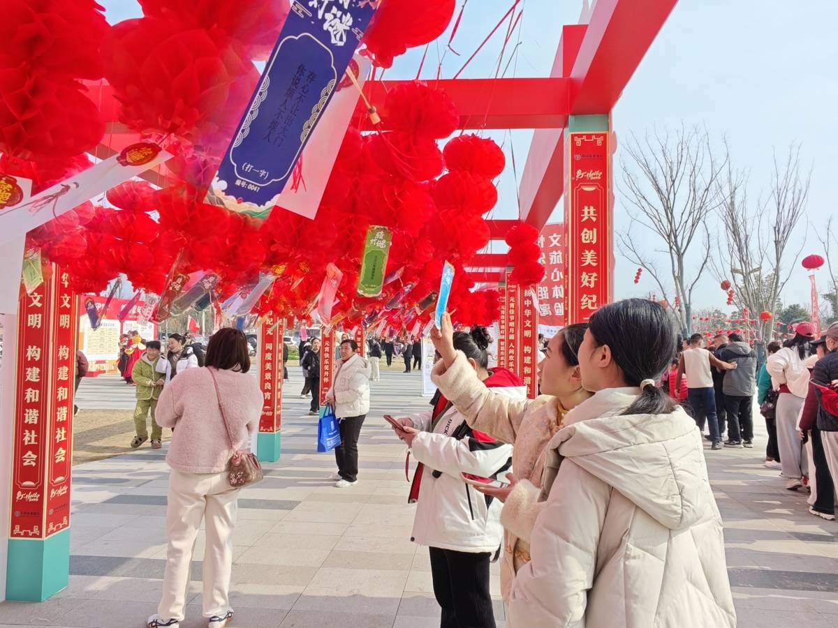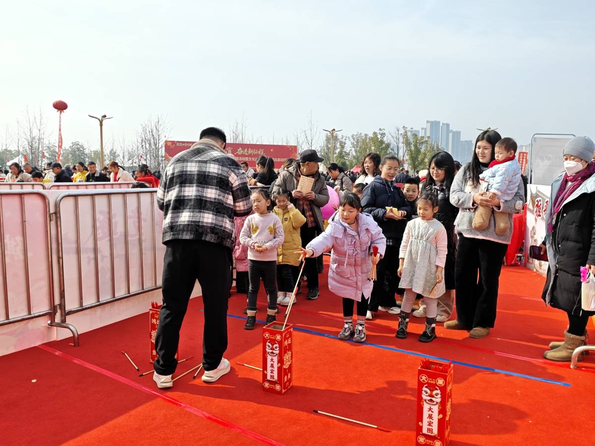 公园入口,猜灯谜区热闹非凡。各式灯笼悬挂廊下,灯笼下方张贴着涵盖诗词、历史、生活常识等内容的趣味灯谜,红色灯笼与各色灯谜纸条相映成趣,营造出浓浓的节日氛围。“猜灯谜是元宵节的传统习俗,既能锻炼脑力,又能感受节日氛围,我们每年都来参加。”市民王女士拿着刚兑换的礼品说道。