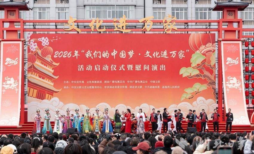 从腊月到元宵,持续47天的“浪漫宣恩过大年”系列活动,把这座城市变成了鄂西南最热闹的地方。2月1日,2026年“我们的中国梦——文化进万家”活动在宣恩启动,中央广播电视总台主持人联袂主持,文艺名家轮番登台,为当地群众献上了一场国家级文化盛宴。随后的春节假期里,墨达楼“招亲”、贡水夜画、非遗巡演、年货市集等41项活动徐徐铺开,让游客沉浸式体验“夜游、夜购、夜娱、夜宴、夜赏”的全场景年味。正月十四晚,长江流域九省非遗与恩施本土民俗同台献艺,湖南《祥龙雄狮》、重庆《玩牛》、贵州安顺《地戏》等节目轮番亮相,将这场新春盛宴推向高潮。