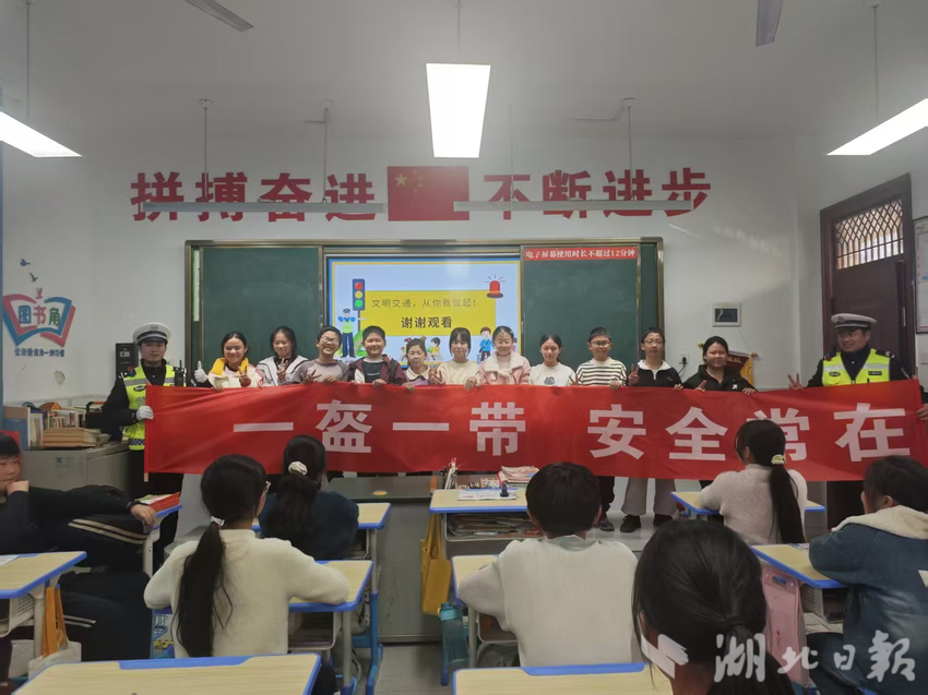 “过斑马线时我们要注意什么?”“坐在爸爸妈妈的车上,从哪边下车最安全?”3月4日下午,在段店小学,华容大队正为学生送去“开学第一课”。宣传员通俗易懂的讲解、屏幕上生动有趣的漫画、教室里争先恐后举手回答问题的同学,都赋予了这堂“开学第一课”不同的意义……