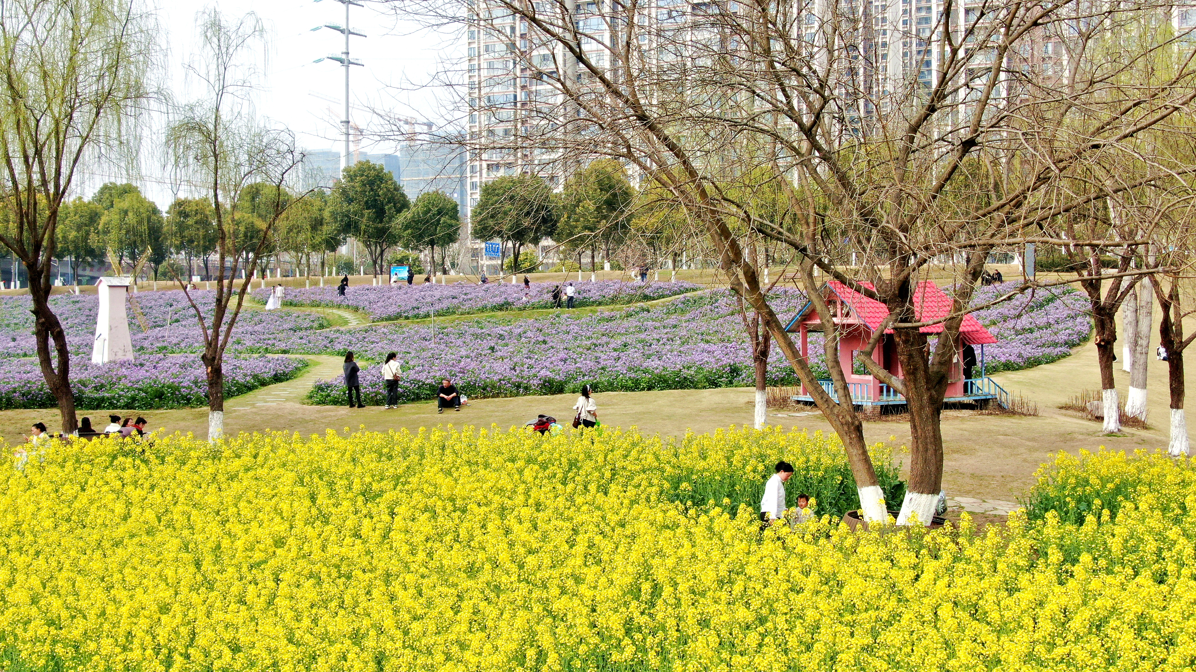 滨江公园和平公园处,市民纷纷走出家门赏花。 通讯员肖静摄