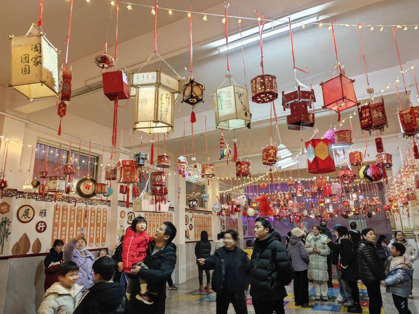 当晚6时30分,赏灯会正式启幕。形态各异的花灯争奇斗艳:憨态可掬的生肖灯、精巧别致的宫灯、充满童趣的卡通灯、气势如虹的武汉舰……每一盏灯都是孩子们对新年的祝福。孩子们兴奋地寻找自己的作品,家长们纷纷拍照留念,现场欢声笑语不断。附近居民也闻讯而来,在流光溢彩中感受浓浓年味。