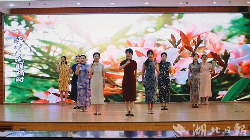 会后,优秀女职工工作案例分享环节精彩纷呈。都市产业集团带来朗诵歌舞剧《春颂》,唱响时代新声、尽显巾帼担当;蔡甸区南湖小学郑莹老师作家风分享《红心永向党 家风代代传》,传递优良家风力量;城投水务集团演绎舞台剧《水脉之光》,生动展现供水女工坚守岗位、守护民生的动人故事;江夏区总工会选送诗朗诵《江城春日·书香巾帼》,以书为翼、以学赋能,尽显新时代女性优雅与风采。