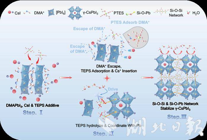全无机CsPbI3钙钛矿因其优异的热稳定性与光电性能,被视为高稳定光伏器件的重要候选材料。但它像娇弱的花朵,一遇潮湿就会改变结构,从能发电的有效状态变成“罢工”状态,此前只能在干燥或惰性气体环境中制作,大大增加了规模化生产难度。