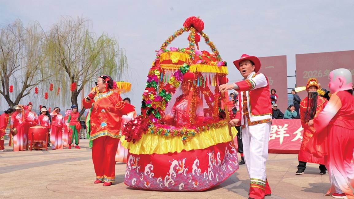 表演者身着特色服饰,动作诙谐生动、韵味十足,将传统民俗的趣味与吉祥寓意展现得淋漓尽致,引得现场观众阵阵喝彩。大伙儿用热情的演绎,传承着传统文化,也寄托着对美好生活的期盼。“期盼祖国繁荣昌盛,人民越来越幸福。”民俗表演者习承兵说。