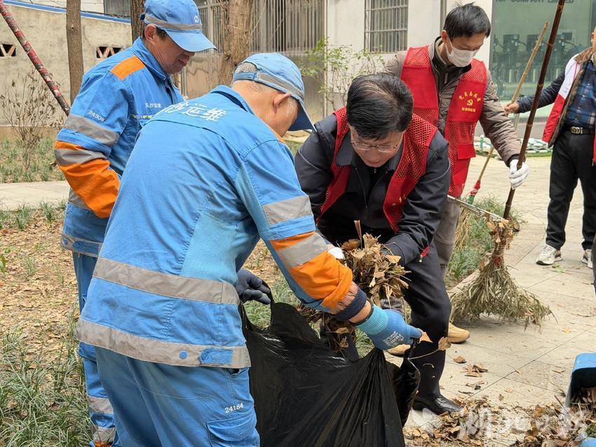 另一边,省民宗委党员志愿者与社区志愿者身着红马甲,手持清洁工具分工协作,清扫路面垃圾、清理绿化带杂草、规整共享单车,集中整治老旧小区卫生死角。志愿者还向居民宣传文明创建理念,不少居民主动加入清洁队伍,共同扮靓家园,让小区环境焕然一新。