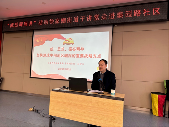 湖北日报客户端讯(通讯员沈蓝蓝)3月5日,“武昌周周讲”活动徐家棚街道子讲堂在秦园路社区举行。社区党员、下沉单位代表、辖区企业代表等70余人参与了活动。