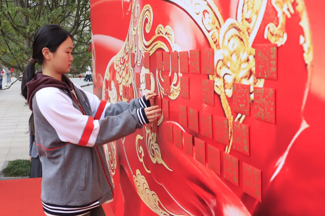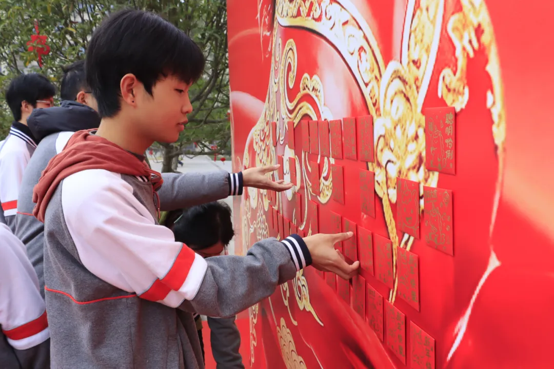 学校特别设置高三心愿红包抽取环节,高三获奖学子随机抽取心愿卡并指定老师完成心愿,暖心互动为冲刺备考的高三学子送上温暖与力量。