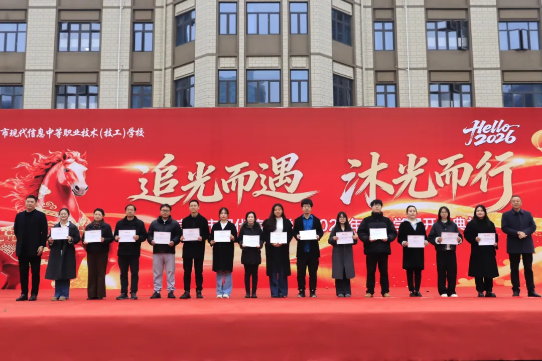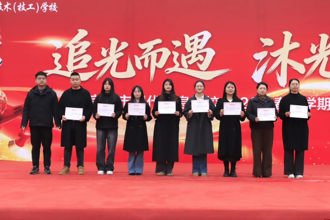 典礼上,学校对过去一学期表现优异的师生进行了隆重表彰。现场依次颁发省市级学生技能(才艺)大赛优秀指导教师奖,表彰在教学中辛勤耕耘的教育工作者。