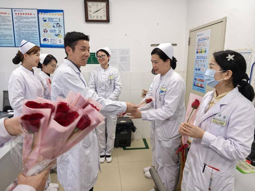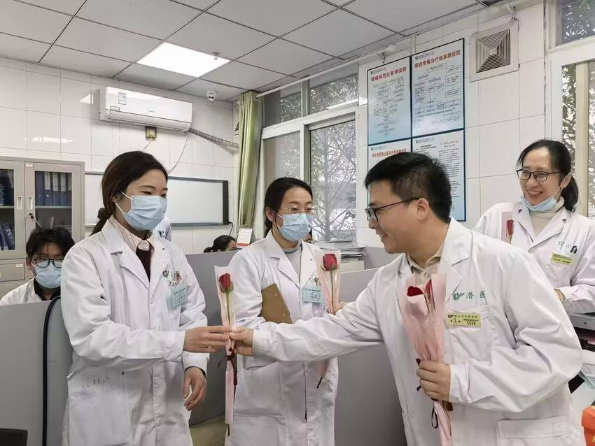3月6日上午,院领导班子深入临床、医技、行政后勤等科室,为在岗女职工、进修生及实习生送上鲜花与节日祝福,与大家亲切交谈,详细询问科室日常工作、职工生活状况以及进修实习生学习情况,高度肯定她们在各自岗位上展现的巾帼风采与辛勤付出,勉励大家继续以专业素养和昂扬姿态立足岗位、再创佳绩。亲切的话语与暖心的祝福,让女职工、进修生和实习生们倍感温暖与鼓舞。