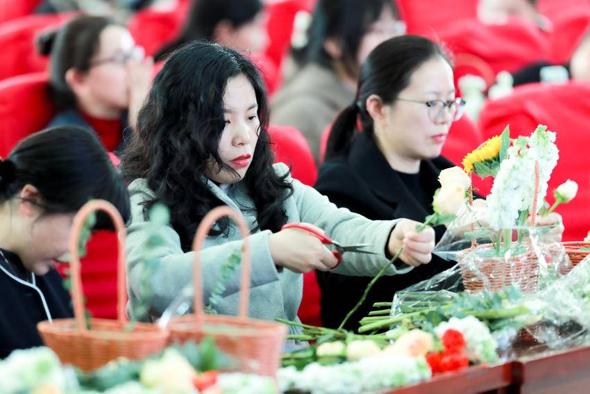 健康讲座后,花艺沙龙温馨启幕。医院特邀资深花艺师现场指导,从花材选择、剪切手法、色彩搭配到构图造型,花艺师细致讲解、手把手示范,女职工们兴致盎然、巧手创作,在修剪、搭配、造型的过程中感受花艺之美,舒缓工作压力。一朵朵鲜花在大家的手中错落有致、焕发生机,现场花香萦绕、笑语盈盈。作品完成后,大家相互欣赏、交流心得,在欢声笑语中增进彼此情谊,定格美好瞬间。