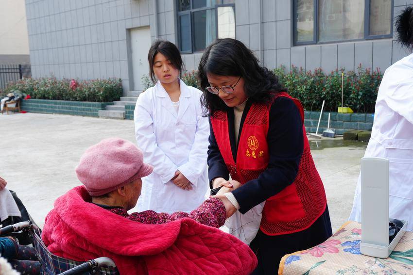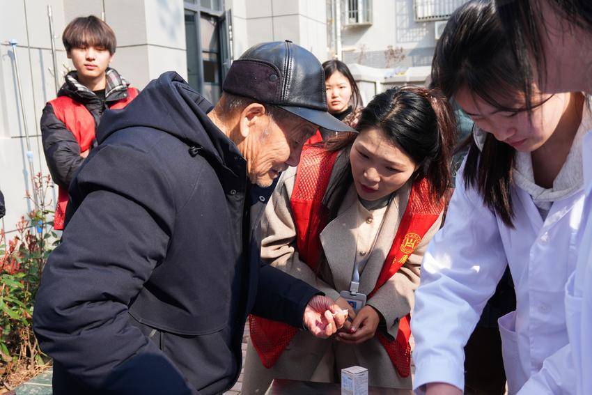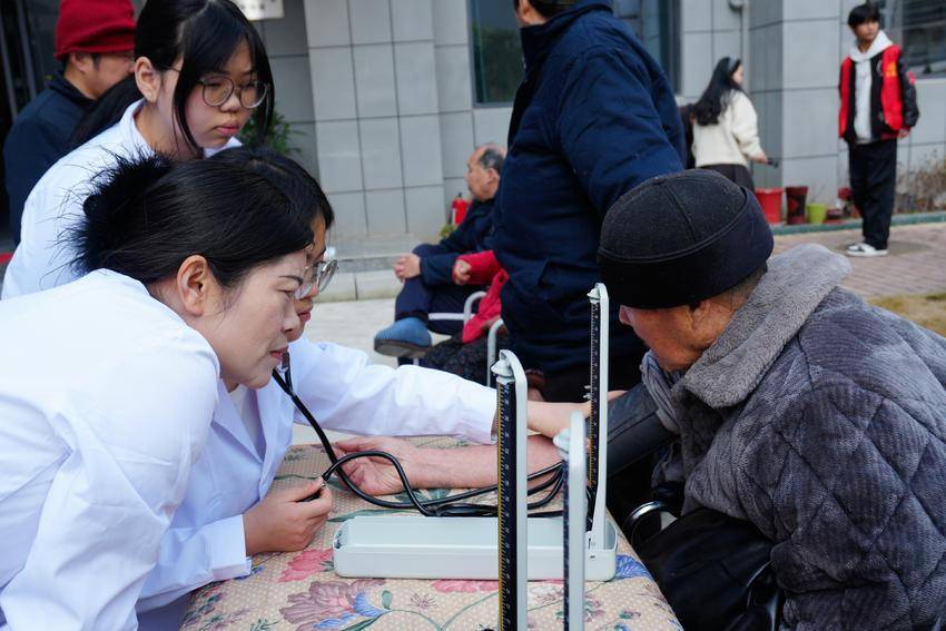 活动现场,志愿者们化身“健康守护者”,为老人们测量血压、检测血糖。党员教师与志愿者详细询问老人饮食、睡眠及慢病管理情况,结合专业知识提供个性化健康指导,细致叮嘱日常用药与生活注意事项,用科学服务守护老人健康。