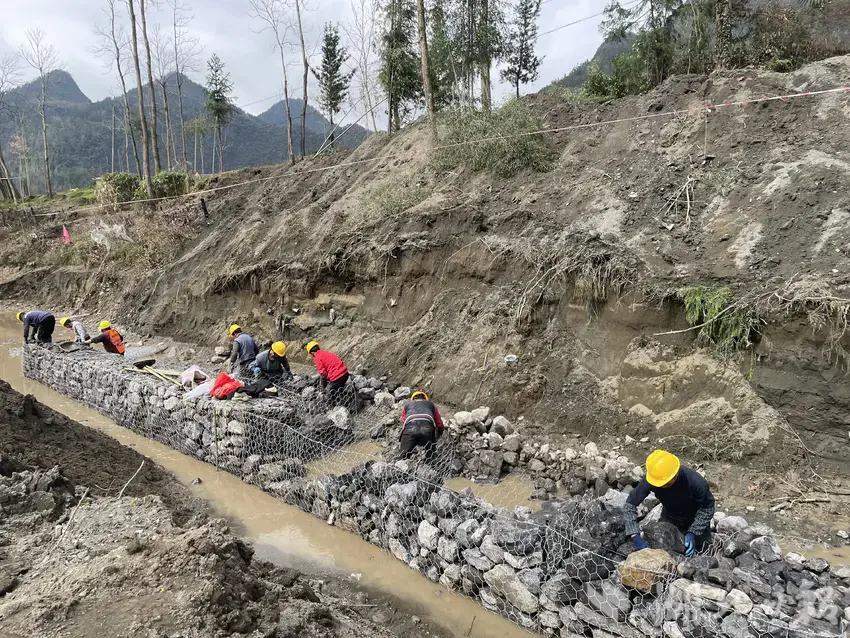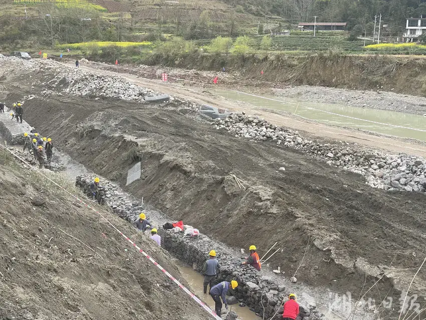 湖北日报客户端讯(通讯员肖昕原、向巍)3月10日,乌江流域阿蓬江(唐岩河)咸丰段治理工程清坪段施工现场机械轰鸣、作业有序,施工人员正加紧推进格宾石笼挡墙建设。