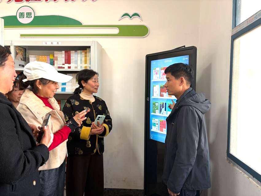 镇文体服务中心负责人现场教学,手把手指导群众操作电子阅览屏,讲解数字资源使用、图书查询和借阅等实用技能,让大家更好地享受现代化公共文化服务。