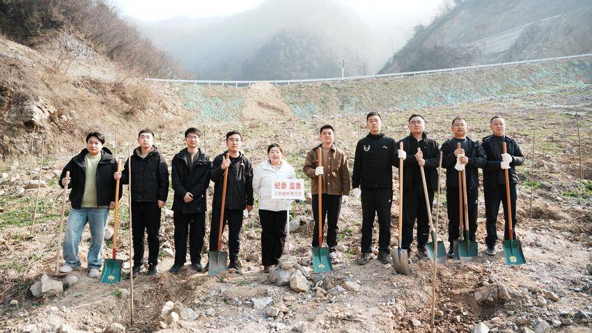 上午九时,植树现场已是一派热火朝天的景象。来自林区各机关单位的党员干部们三五成组,分工协作:挥锹铲土、扶正树苗、培土围堰、提水浇灌......每一个环节都有条不紊,每一道工序都细致入微。