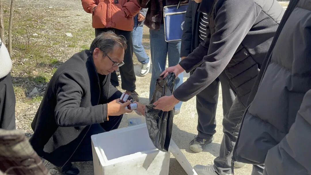 会后,全体人员前往塔坪村中蜂养殖示范基地进行现场参观学习。杨晓发详细介绍了标准化蜂箱布置、春季蜂群管理、蜜源植物配置等实践经验,同时,林区农业农村局工作人员现场介绍了中囊虫复方抗体试剂的使用方法,帮助养殖户科学应对中蜂常见病害,提升养殖效益。演示结束后,向养殖户代表们免费赠送了一批中囊虫复方抗体试剂,切实助力春繁生产。收到物资的养殖户纷纷表示:“有了技术和物资的双重保障,今年春繁更有信心了!”