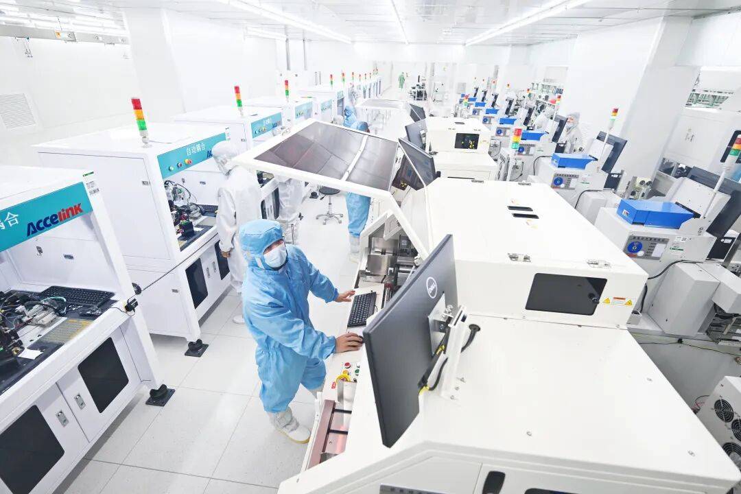 光迅科技车间,全自动高速光模块生产线全速运转
