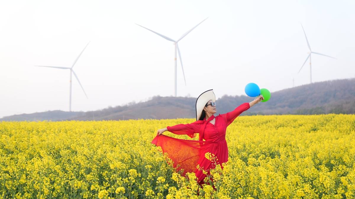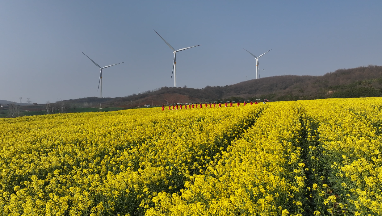 湖北日报讯(记者刘孝军、通讯员钟军、胡智敏)3月12日,宜城市南营街道千余亩油菜花竞相绽放。金黄花海随风翻涌,与青山、风车相映成趣,绘就一幅生机盎然的春日田园画卷。
