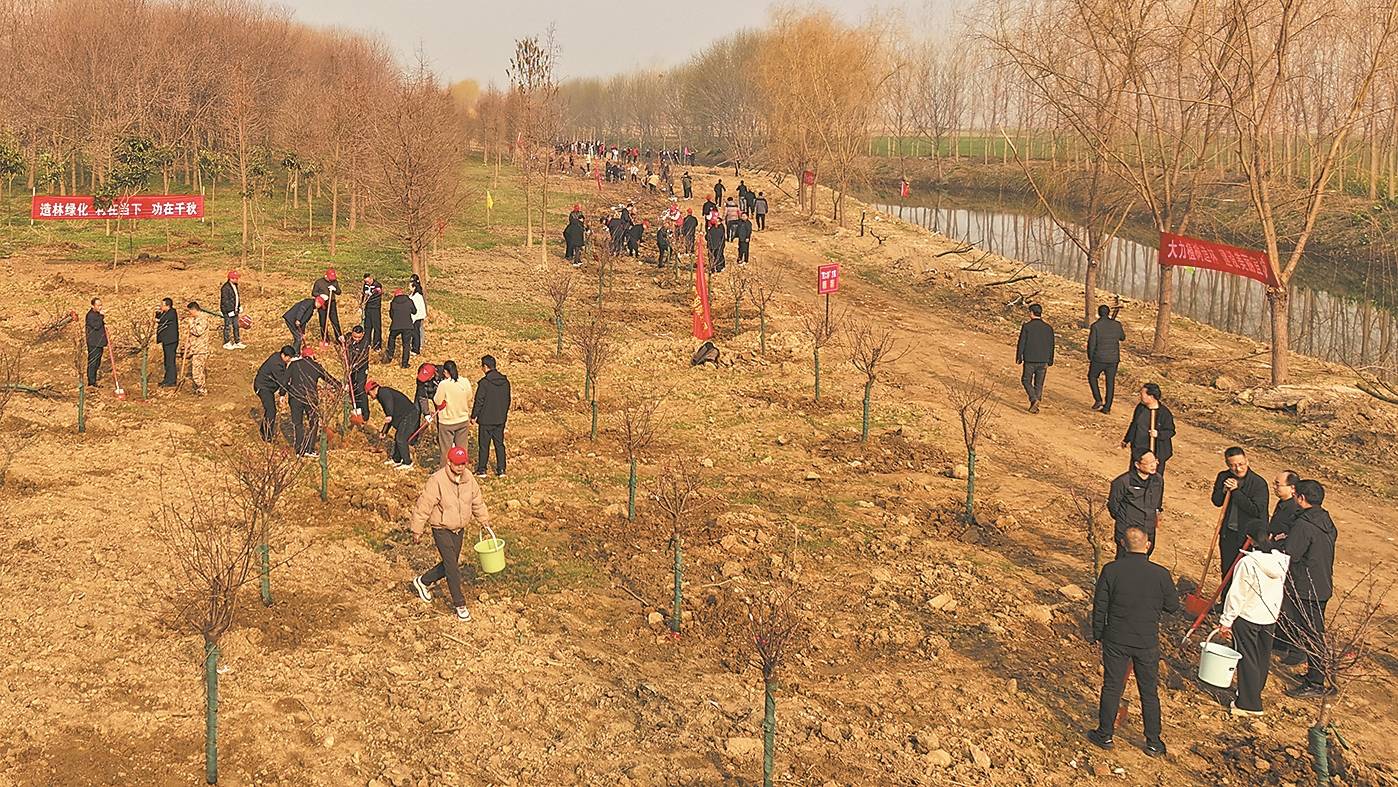 3月11日,宜城市各单位、各部门组织干部职工及志愿者,前往湖北宜城万洋洲国家湿地公园,开展全市集中义务植树活动。(来源:襄阳日报