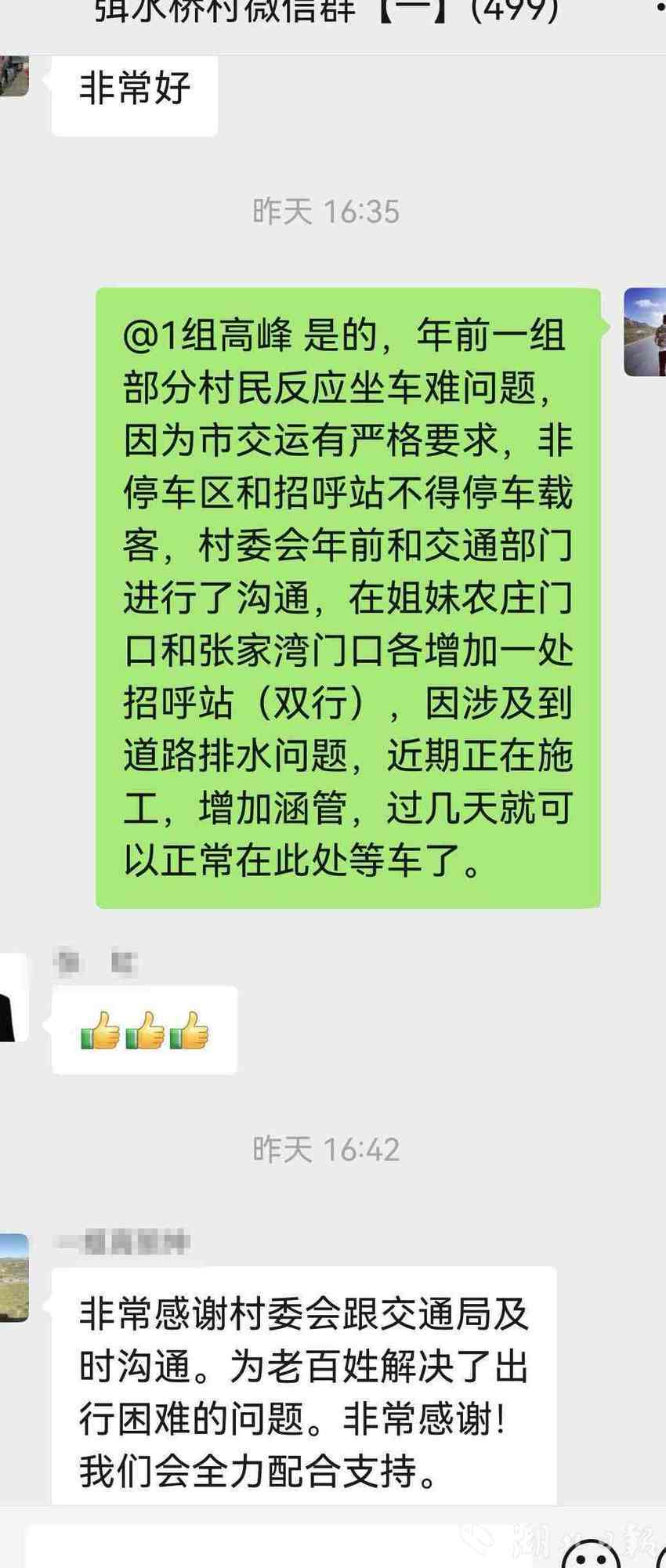 湖北日报客户端讯(通讯员 汪雄)“感谢村委会和交通运输局及时沟通,为老百姓解决了出行难题!”“为民谋福利、解忧难,为村绘蓝图、促发展,为弭水桥村党支部点赞!”近日,宜都市五眼镇弭水桥村的村民们在微信群里纷纷留言,满是对新启用公交招呼站的赞许。