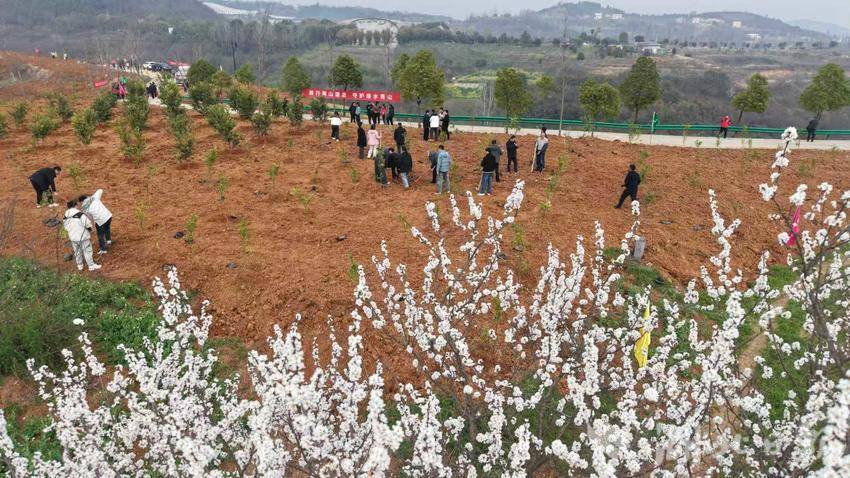 植树现场人头攒动、热火朝天,处处洋溢着生机与活力。大家按照技术规程密切协作,一起挥锹铲土、培土围垄、提水浇灌,栽下一株株新苗。经过紧张忙碌,新植的10000余株柑橘、油橄榄、桂花等树苗在春风中昂然挺立,孕育着勃勃生机,焕发出绿色希望。