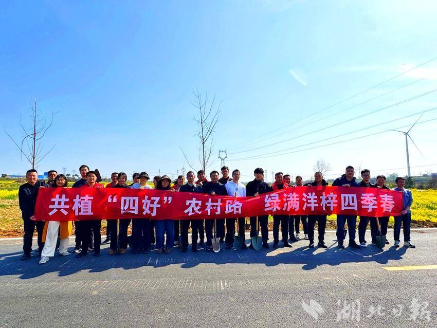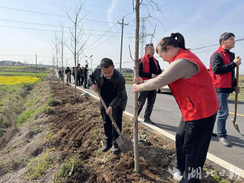 湖北日报客户端讯(通讯员傅之星)阳春三月万物苏,植树添绿正当时。正值义务植树运动45周年,钟祥市洋梓镇组织党员干部、人大代表、工会会员以及沿线汪李、火庙等村志愿者,在“四好农村路”汪高线沿线开展义务植树活动,为乡村道路添新绿,为民生福祉筑根基。