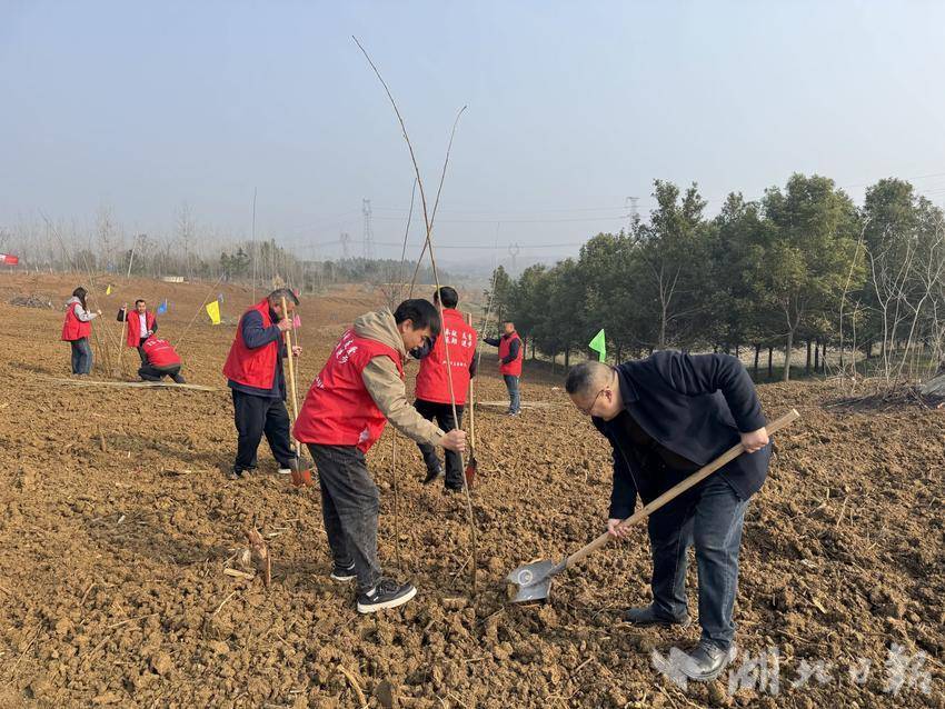 湖北日报客户端讯(通讯员胡乒)3月12日,钟祥市石牌镇组织机关干部、青年志愿者30余人,前往八姓庙村开展义务植树活动,以实际行动践行“绿水青山就是金山银山”理念,推深做实林长制,为“绿满钟祥再提升”行动添绿增彩。