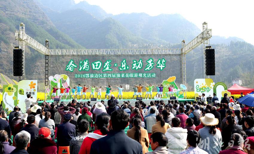 咸丰县与黔江区同属武陵山区,山水相依、人文同源,两地携手探索“党建引领、资源共享、产业共兴、治理共抓”边区共建模式,结下“一树花开两地芳”的深厚情谊。近年来,两地以千亩油菜特色资源为依托,以花为媒、以春为契,持续丰富乡村文旅消费业态和场景,既让八方游客领略到鄂渝边区的春日盛景,更以区域深度协作推动乡村资源变资产、农特产品变商品,助力两地实现产业发展同频共进、乡村振兴同向发力。