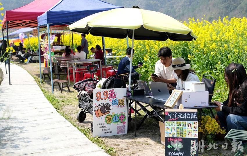 花海间,农趣运动会火热开赛,趣味插秧、引水灌溉、守护田园等特色项目趣味十足,参与者在竞技比拼中体验农事劳作的乐趣;农特产品展销区人气高涨,咸黔两地的蜂蜜、茶叶、菜油等优质农特产品集中亮相,游客们驻足挑选、争相采购;书画作品展、现场写生、花海摄影、围炉煮茶等体验活动同步开展,游客漫步花海,尽享春日休闲时光。