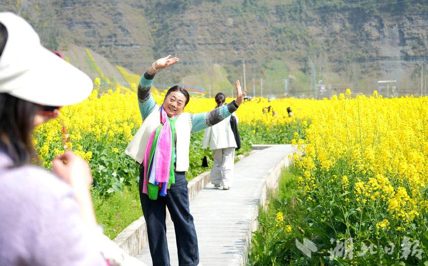 湖北日报客户端讯(通讯员叶莉)3月13日,以“春满田垄・乐动芳华”为主题的鄂渝边区第四届油菜花旅游观光活动在咸丰县大路坝区曹家坝油菜基地浪漫启幕。咸黔两地群众携亲伴友、踏春而行,共赴这场与花海相拥的春日之约。