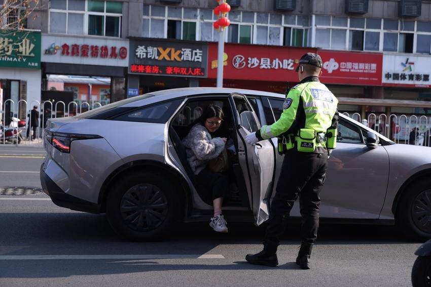 在黄香路小学执勤点,一名考生同样遭遇了身份证丢失的困境。面对手足无措的考生,直属二大队执勤民警一边安抚其情绪,一边迅速启动联动机制,第一时间联系辖区派出所。为确保万无一失,民警驾驶警车将考生送至城南派出所,通过“户政急办”通道快速补办了身份证明,随后又将考生安全送回考点。