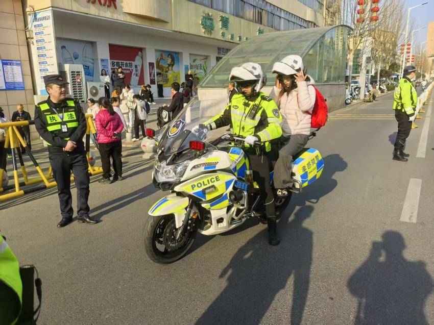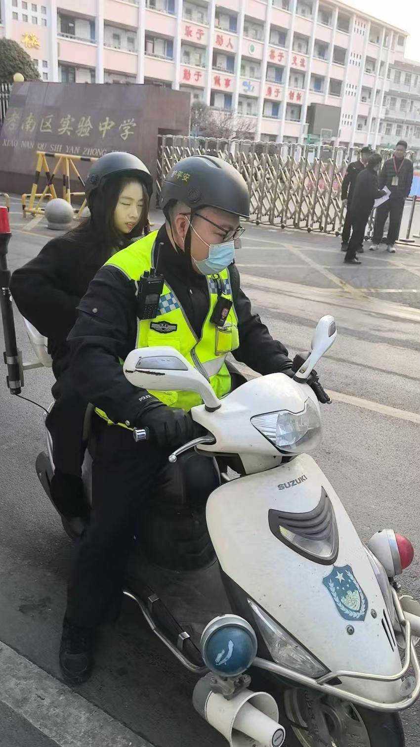 几乎同一时间,类似的紧急求助也在其他考点上演。在孝感城区環川学校考点,距离考试开始已不足半小时,一名考生慌张地向执勤的直属二大队女子骑警队求助,其准考证不慎丢失。了解情况后,女骑警二话不说,立即发动警用摩托车,载着考生风驰电掣地寻找附近打印店。凭借对辖区地形的熟悉,队员迅速带领考生完成打印并原路返回,确保考生顺利步入考场。