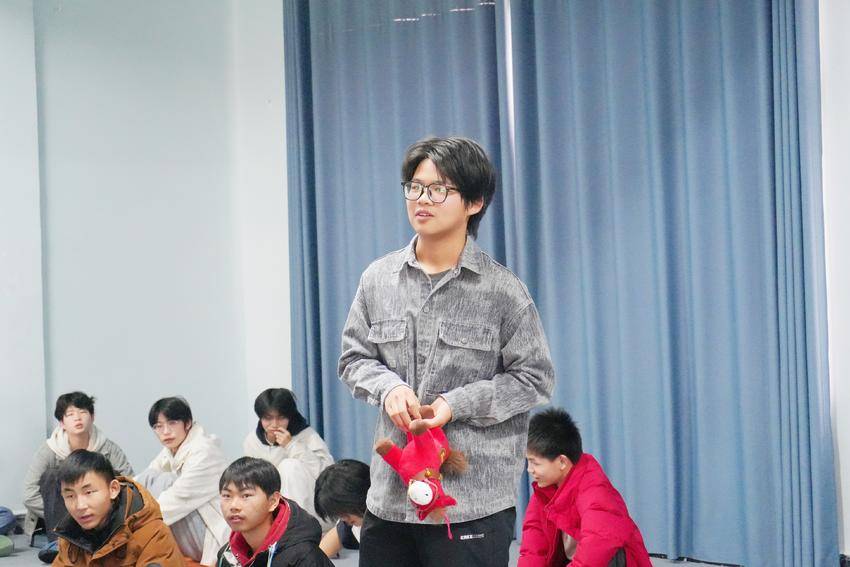 趣味暖身,轻松开启“校园模式”。课堂伊始,杜老师紧扣马年主题设计系列互动游戏,迅速点燃现场氛围。围绕马年“八骏图”,同学们被分为“放自己一马”“条条大路通罗马”等八个趣味小组,开展“马年指令蹲”游戏,整齐的动作、响亮的口令,让学生在协作互动中快速融入集体,驱散开学后的陌生感;随后的开学热身操进一步舒展身心,而“套马的汉子”趣味问答环节,更是让课堂欢乐升级。杜老师通过抛小马玩偶等方式随机点人,邀请学生分享寒假里的暖心瞬间、趣味趣事,在轻松的对话中梳理假期回忆,实现从“假期模式”到 “校园模式”的温柔过渡,为后续心理探索做好铺垫。