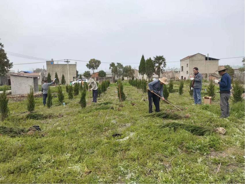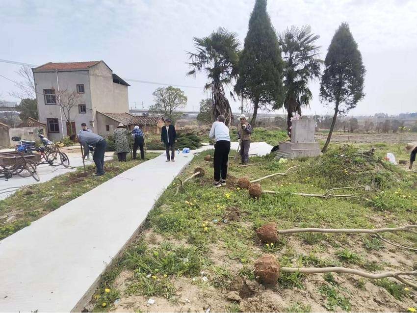 从晨光熹微到夕阳西下,经过一天的辛勤劳作,昔日杂草丛生的闲置地块,如今已挺立起一排排整齐的新绿。紫薇树、红叶石楠、塔柏树等错落有致、迎风摇曳,为石桥湾增添了一抹灵动的春意。看着亲手栽种的树苗扎根沃土,村民们脸上洋溢着满满的成就感,一位村民笑着说道:“以后散步就有好去处了!”