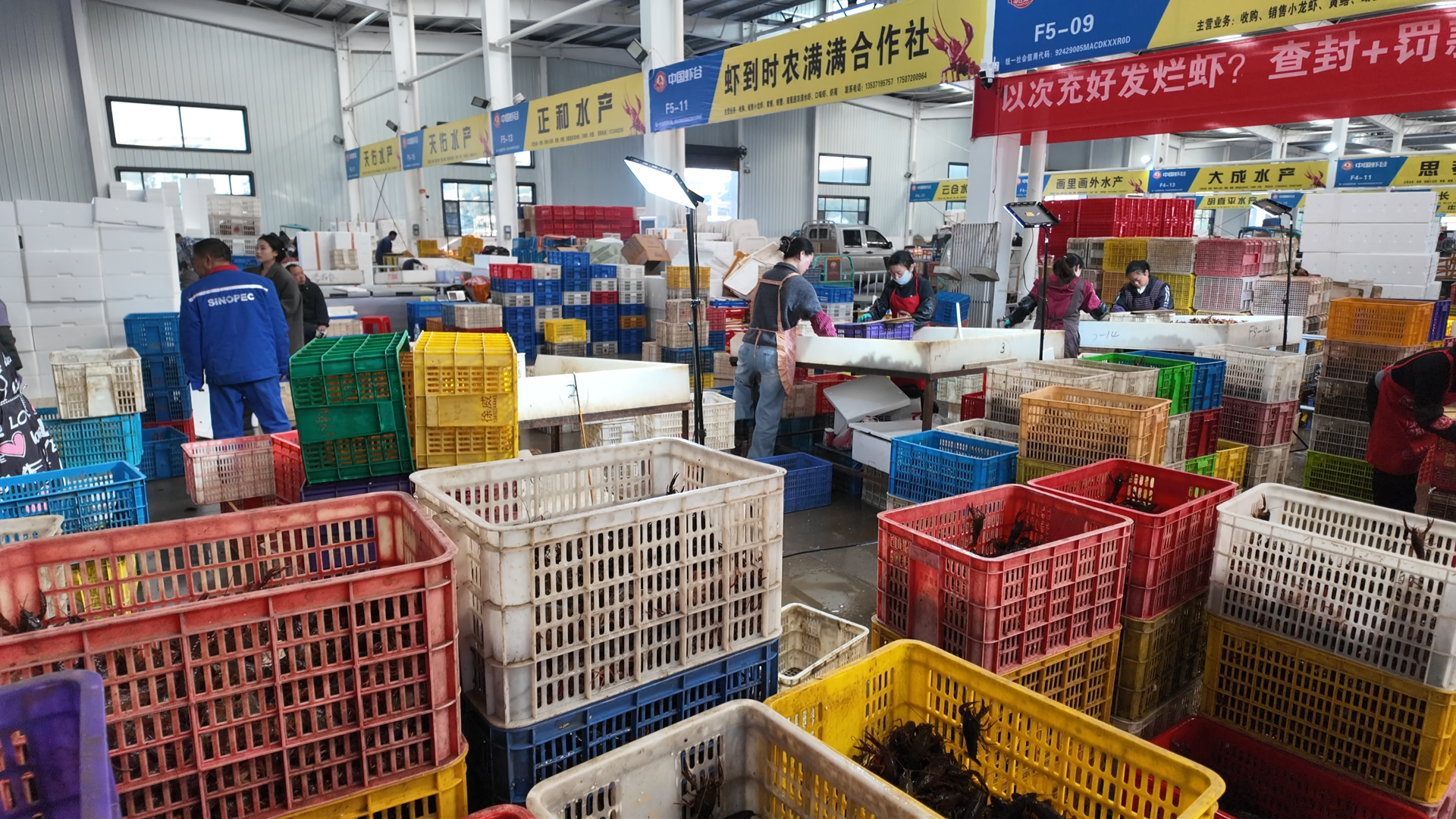 “这边买货卖货都方便,差一点多一点都好处理。最主要是物流好,全国各地都到,不用我们操心。”王红梅话语间透着踏实。在她身后,分拣好的小龙虾已被打包,即将发往福建、广东等地。