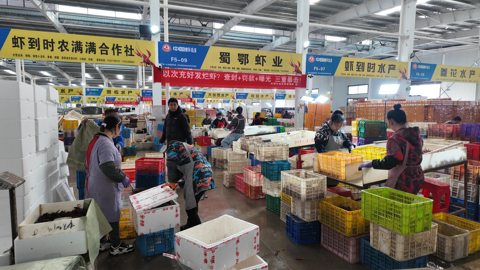 走进中国虾谷小龙虾交易中心,映入眼帘的是一派繁忙景象:虾商手持订单穿梭忙碌,虾嫂们指尖翻飞熟练分拣,虾农们满载而来喜笑颜开。随着潜江龙虾大量上市,这个全国最大的小龙虾交易集散地迎来热闹时节。