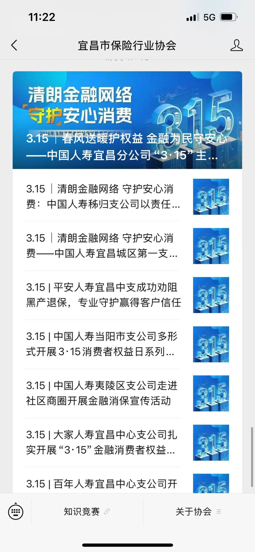 多维联动护权益。活动期间,宜昌金融监管分局发布《宜昌金融监管分局关于防范金融网络营销套路的风险提示》《宜昌金融监管分局关于警惕非法金融陷阱的风险提示》等,让风险警示筑牢群众身边的“安全墙”。积极参加宜昌市消费者权益保护委员会举办的2026年“3·15”纪念活动,拍摄的《破解保险赔偿难 守护城市赶路人》短视频荣获2026年宜昌市“提升消费品质 保护消费者合法权益”公益短视频大赛二等奖,选送的银行保险机构“维护权益”典型案例荣获2025年度全市消费维权十大典型案例。