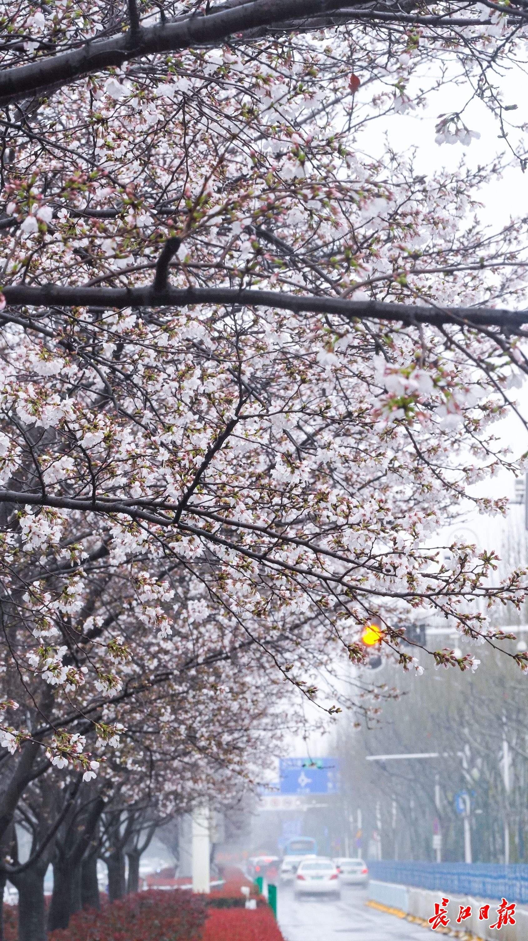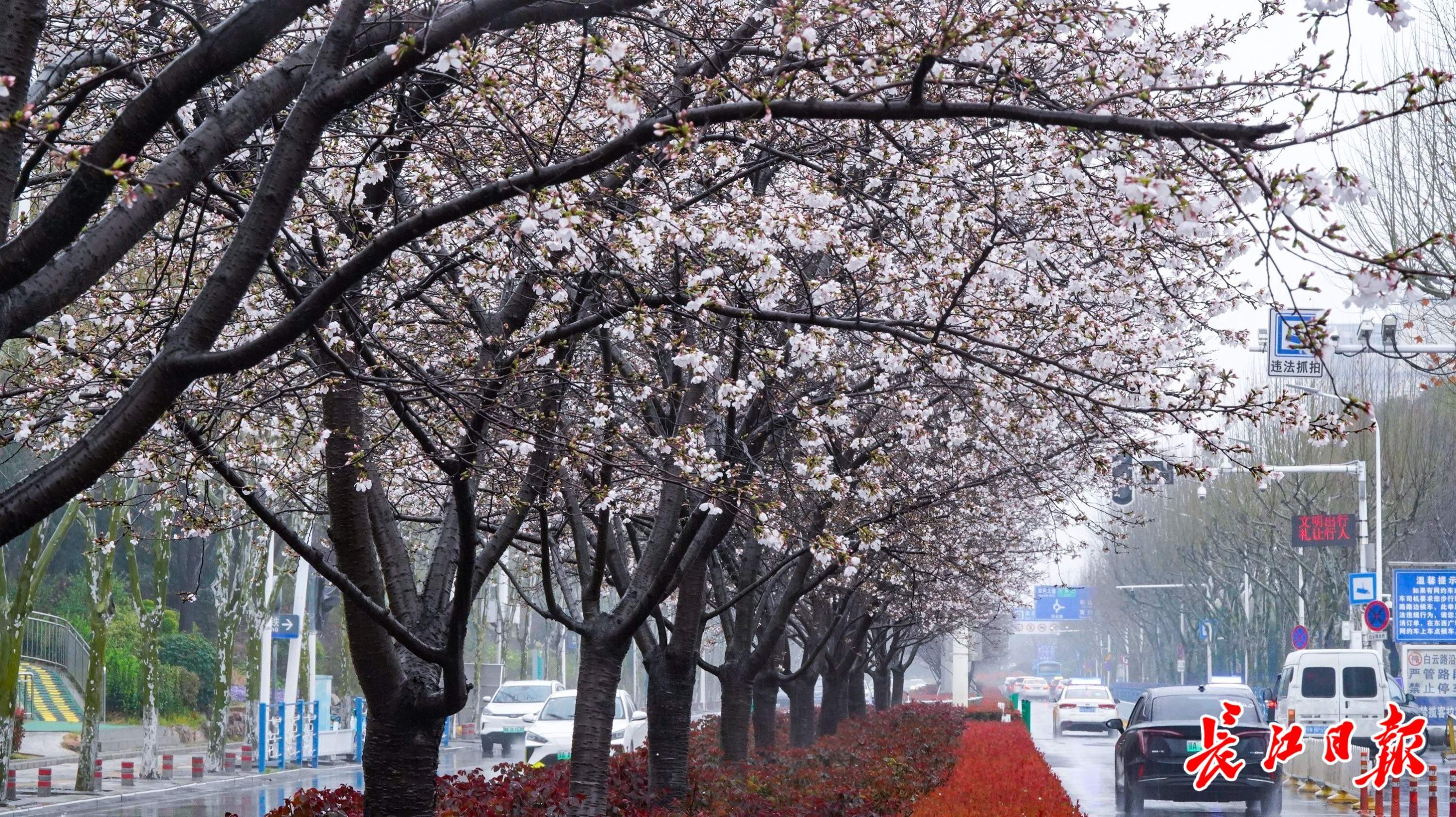 记者看到,紧邻东广场的白云路,中分带内种植的染井吉野樱花也已盛开,一溜白色樱花将这条道路变成了樱花路。进出站旅客纷纷在广场边赏花拍照。