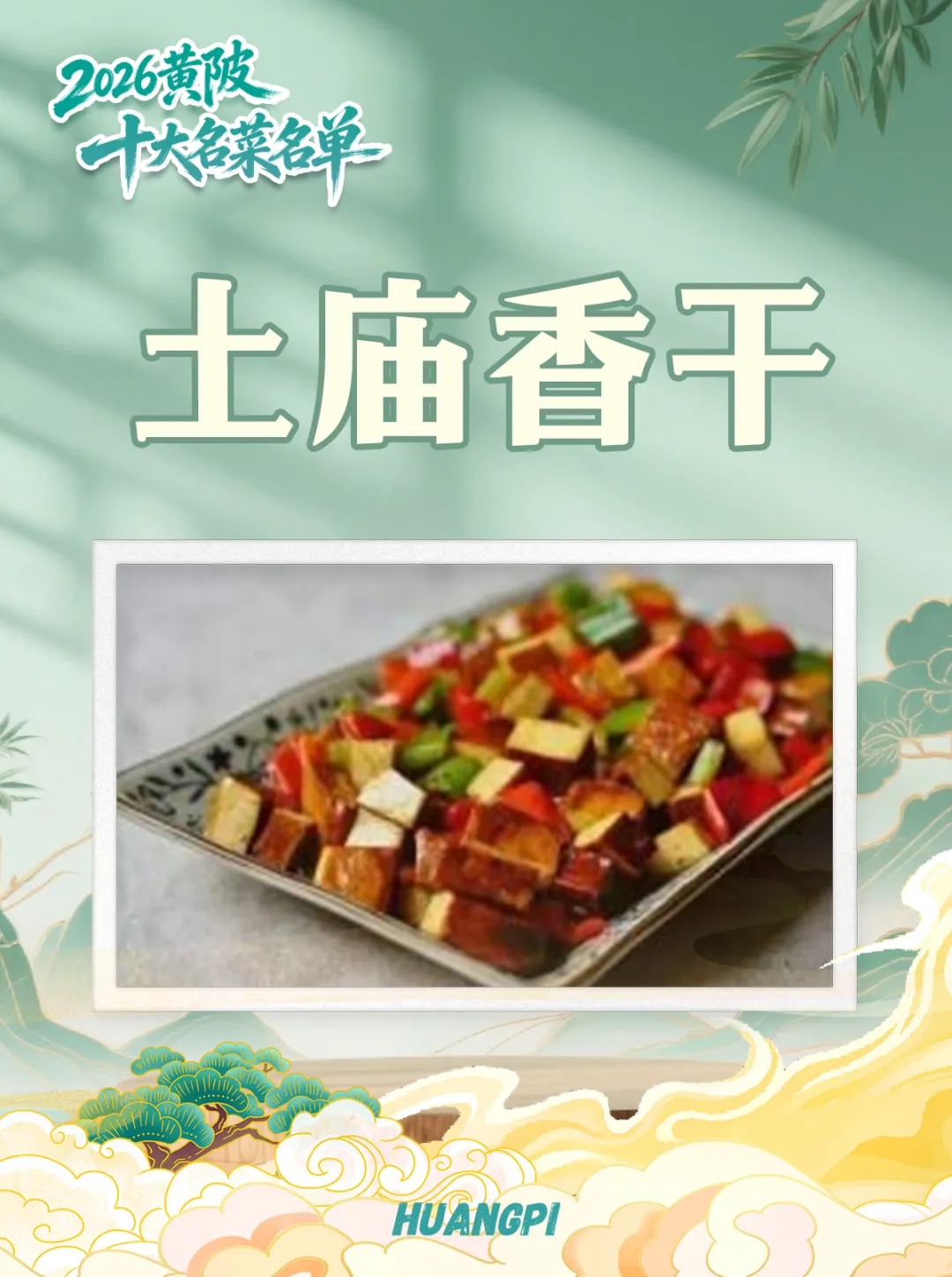 黄陂土庙地区的传统豆制品小吃,以本地优质黄豆为原料,经浸泡、磨浆、点卤、压制后,再用八角、桂皮等香料卤制入味,部分还会经柴火慢熏增香。