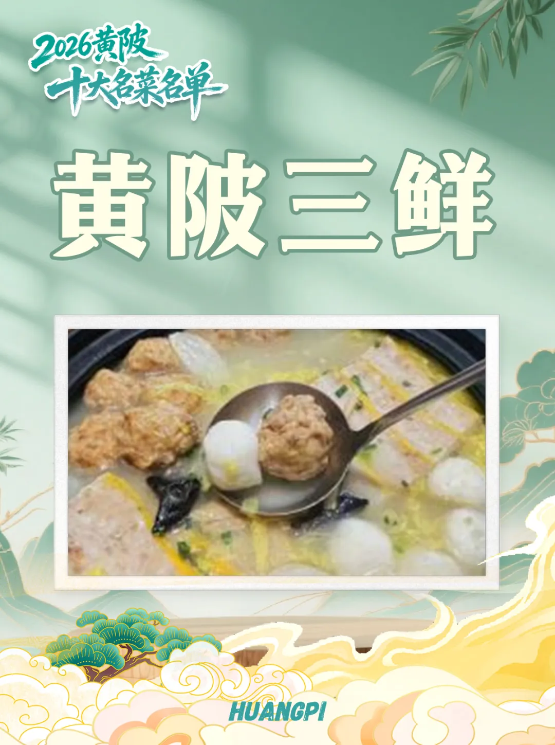 又称“黄陂三合”,传承数百年,2020年成功申报省级非物质文化遗产。由鱼丸、肉丸、肉糕“三鲜合一”而成,是当地宴席“无此不成席”的压轴菜。