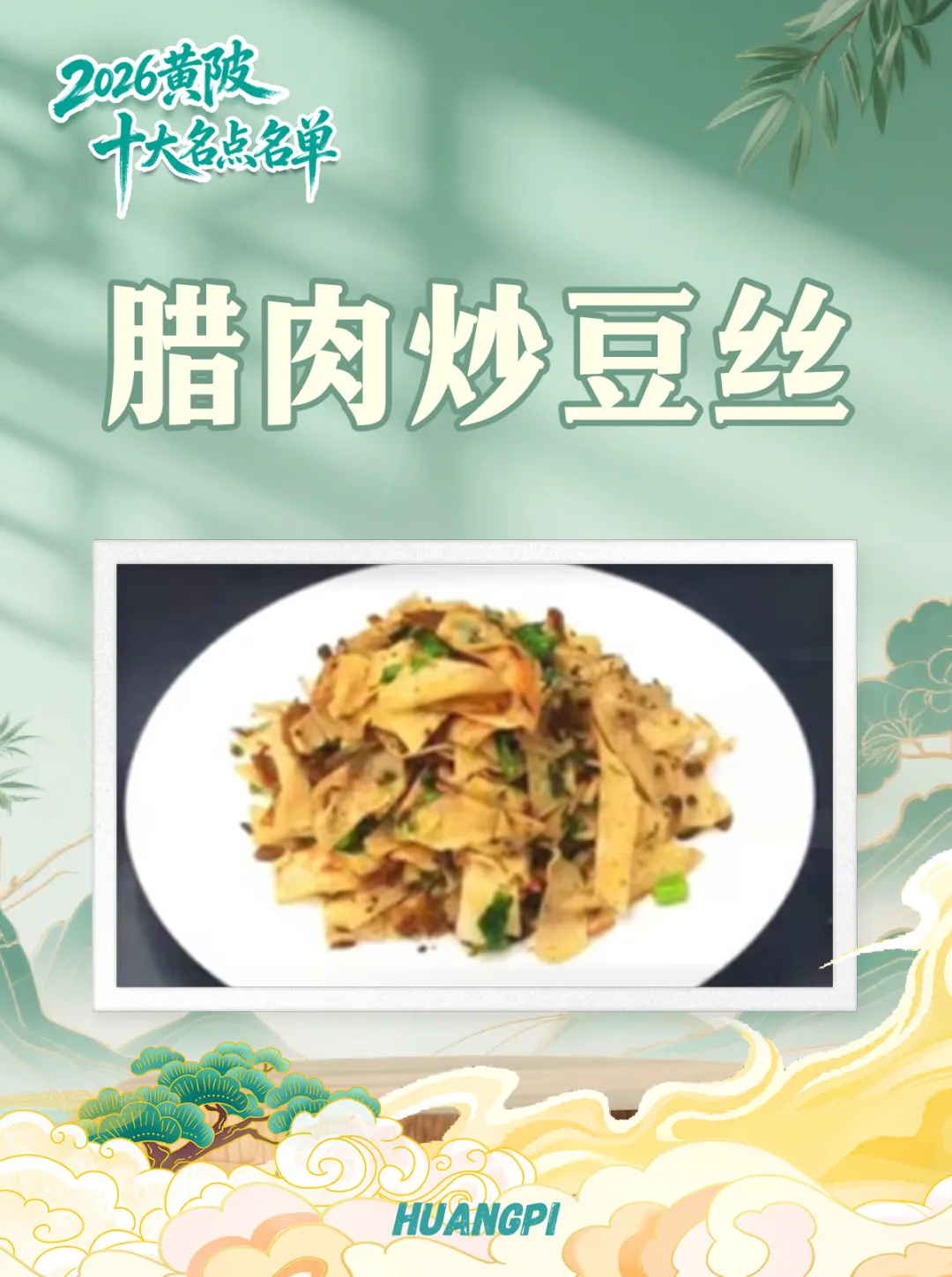 黄陂经典家常小炒,豆丝柔韧筋道,腊肉咸香醇厚,蒜苗清香解腻,是老少皆宜的风味美食。