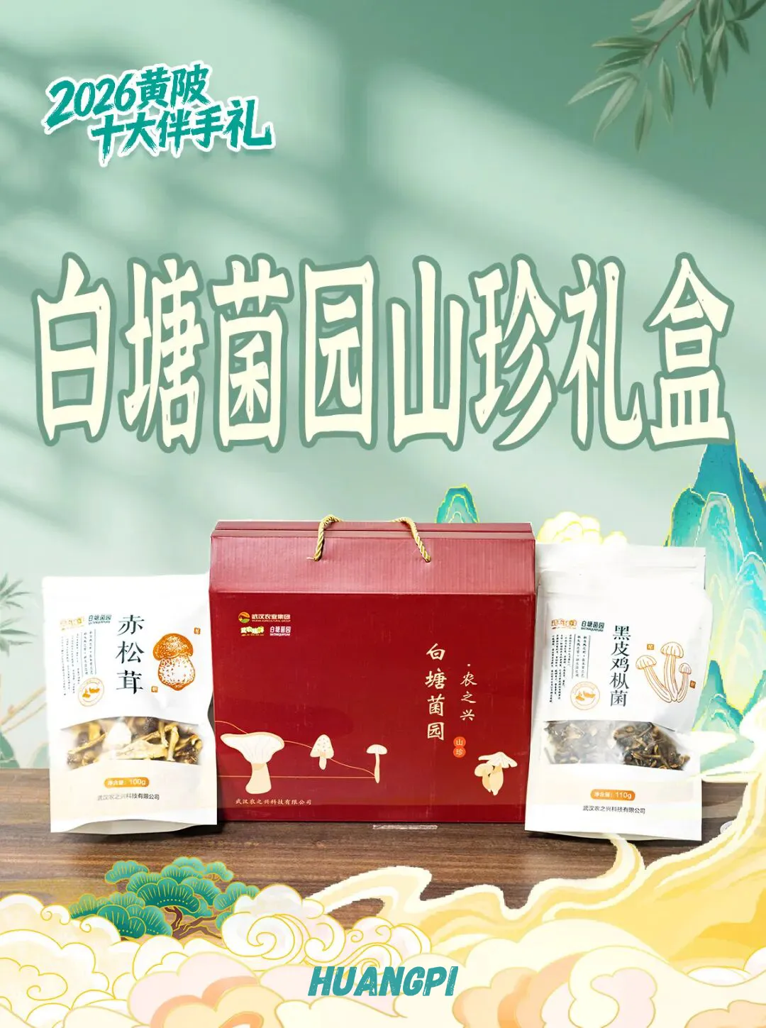“黄陂菌韵·礼藏自然”。精选赤松茸、鸡枞菌等山珍,包装雅致环保,将黄陂山野的珍馐风味精致封存。