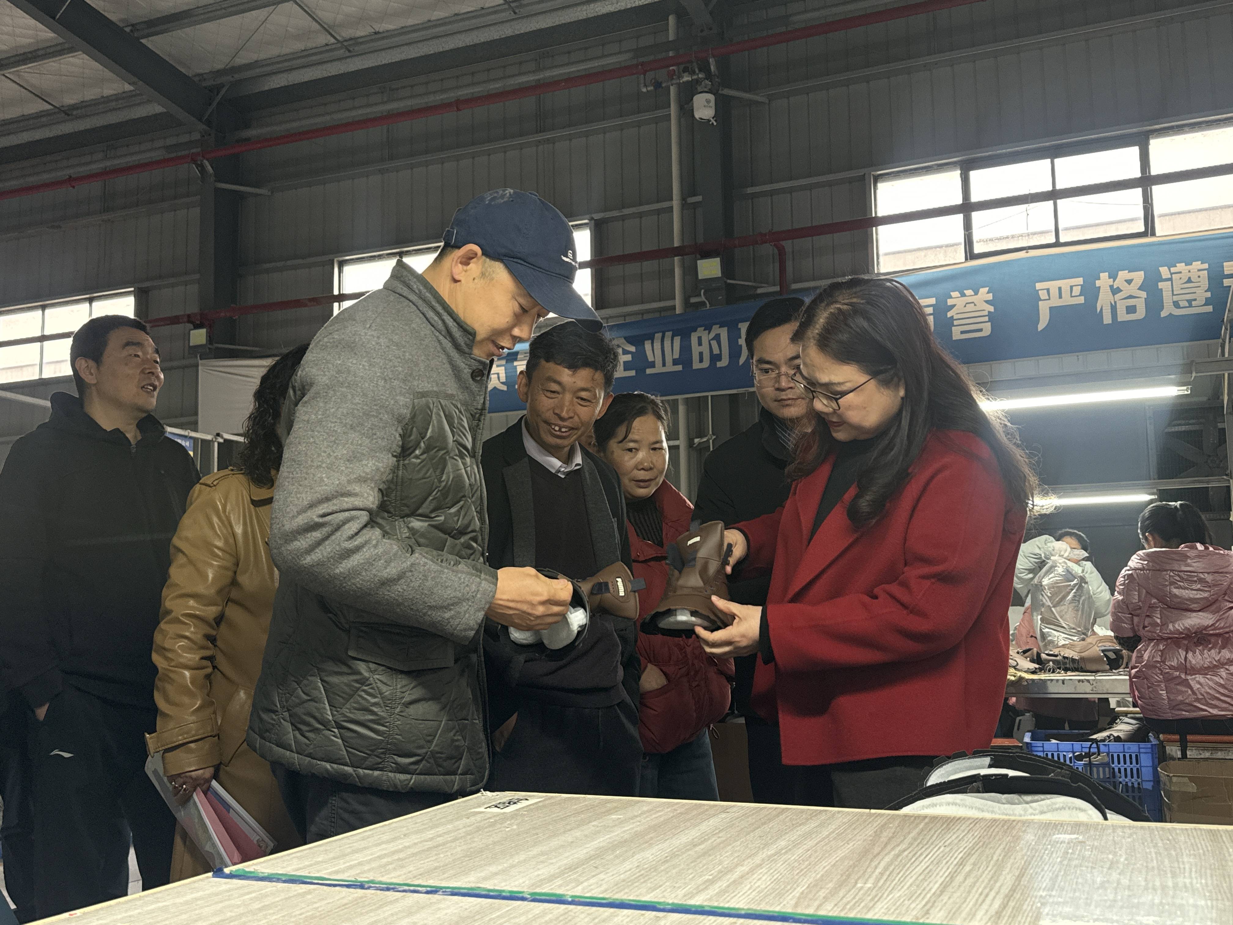 调研组一行先后前往阳新县金龙精英校服厂、湖北众源鞋业有限公司、黄石同城互联传媒有限公司,实地察看企业生产经营、品牌建设、数字化应用等情况,与企业负责人深入交流,详细了解企业在转型发展中遇到的难点、堵点问题,倾听企业的意见和诉求。