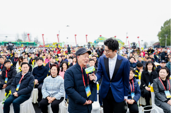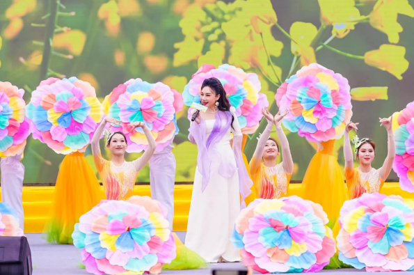 傅廷栋、李培武、朱蓓薇三位中国工程院院士亲临现场,为油菜产业高质量发展赋能;节会吉祥物“油宝”正式亮相,四片明黄花瓣搭配萌趣造型圈粉无数;人形机器人带来《花海律动》舞蹈秀,与演员穿梭互动、派发文创好礼,传统民俗与现代科技碰撞出别样火花。