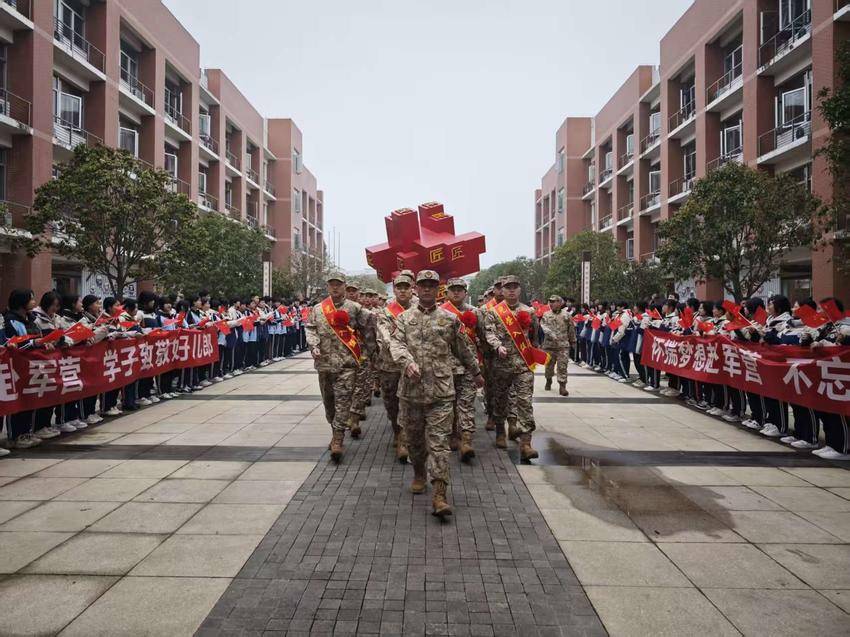 仪式结束后,随着指挥员的口令,新兵们迈着整齐矫健的步伐,依次通过“从戎门”。职教中心的师生和家长在两侧欢送新兵,表达对他们的祝贺、崇敬与不舍。一步踏过,便从普通青年转变为人民子弟兵;一步踏过,便将家乡的嘱托扛上肩头,将青春的梦想融入强军伟业。