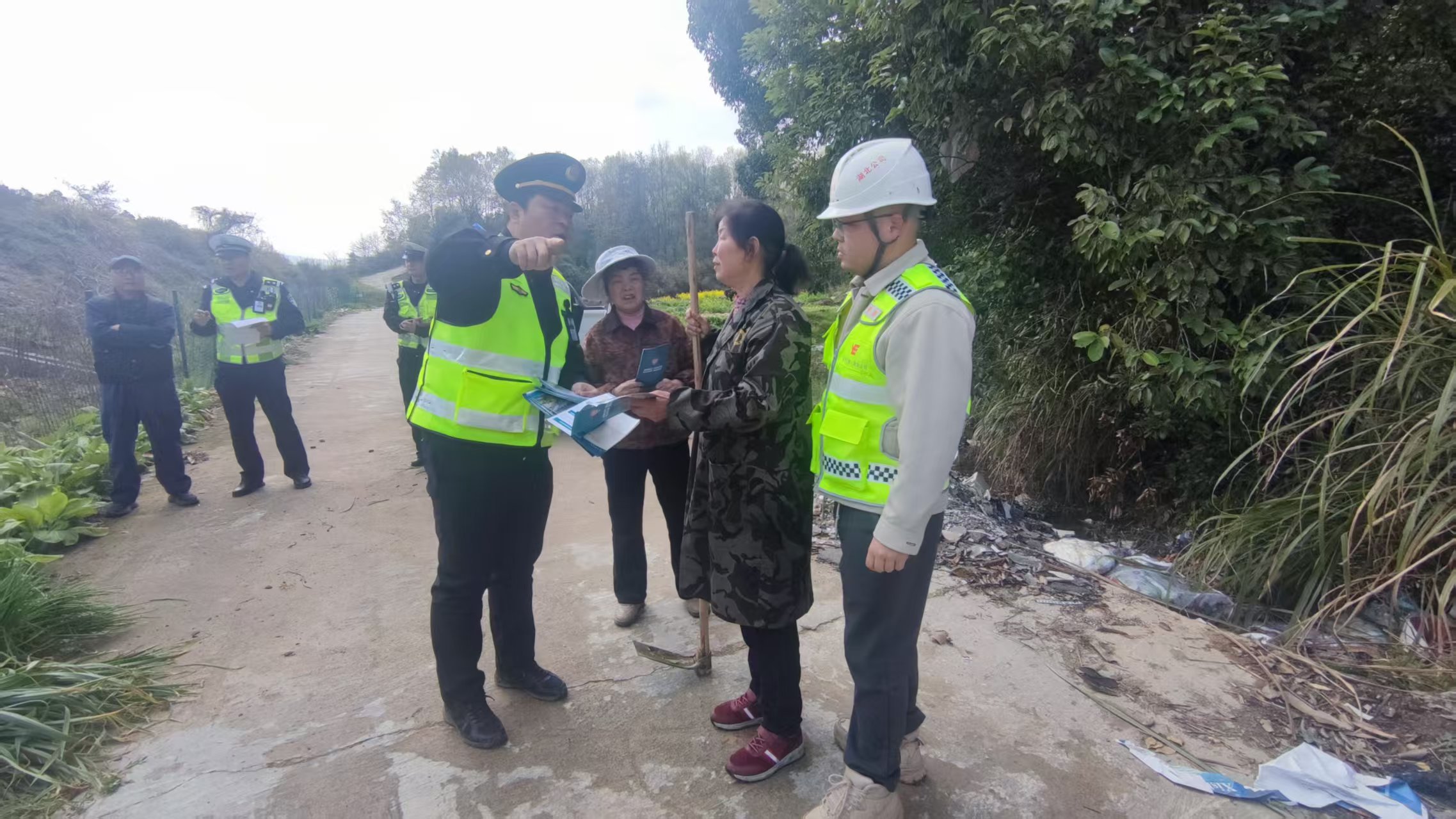 整治同步,普法同行。联合执法队伍坚持“整治一处、宣传一片”,深入隔离网周边村庄、田间地头,向村民发放公路安全宣传手册,面对面讲解《中华人民共和国公路法》《公路安全保护条例》等法律法规,重点阐明高速隔离网内非法种植、破坏隔离设施、行人擅自上高速的法律责任与安全风险,结合典型事故案例以案释法,引导群众自觉遵守交通规则、爱护公路设施、远离高速危险区域。工作人员还在沿线醒目位置张贴警示标语、设置宣传提示,持续扩大普法覆盖面,提升群众爱路护路与安全出行意识。