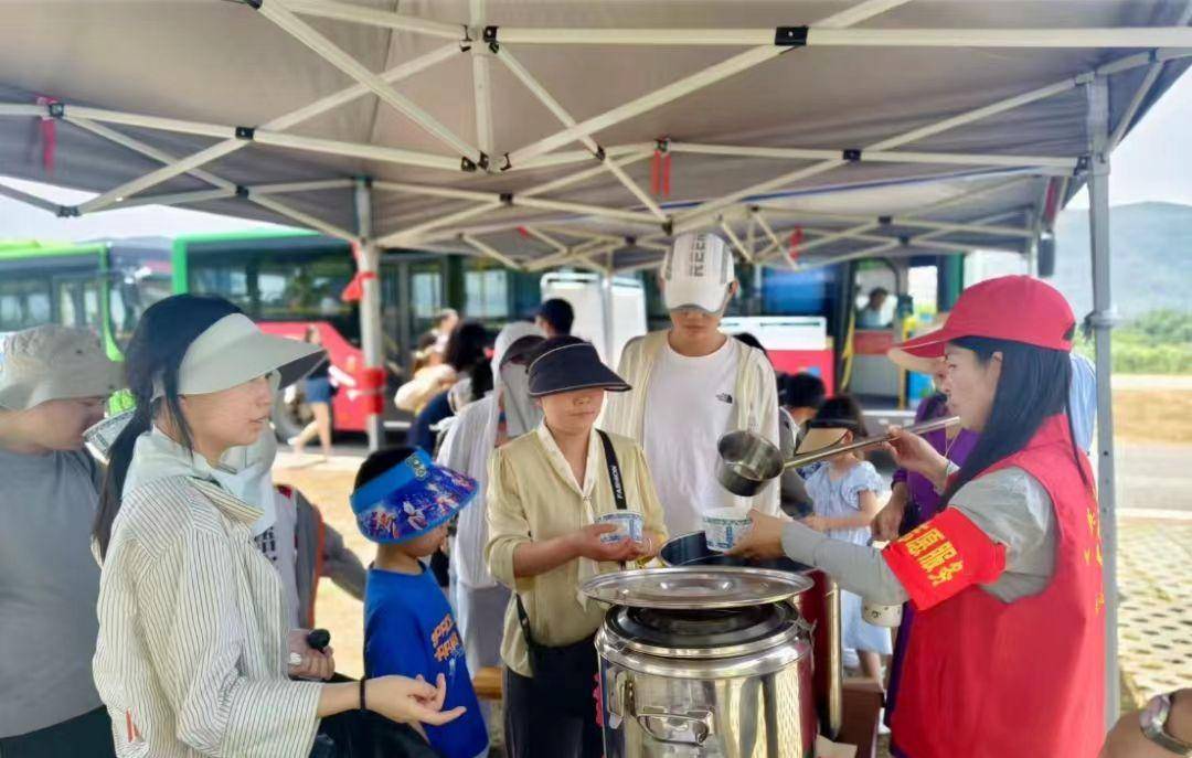 截至2025年底,仙岛湖党员志愿者累计服务时长达8000小时,累计服务游客达3.2万余人次。在夏季高温和旅游高峰期,景区周边的暖心服务点免费为游客、环卫工人提供绿豆汤、饮用水等防暑物资,细节化、人性化的服务让游客倍感温暖。