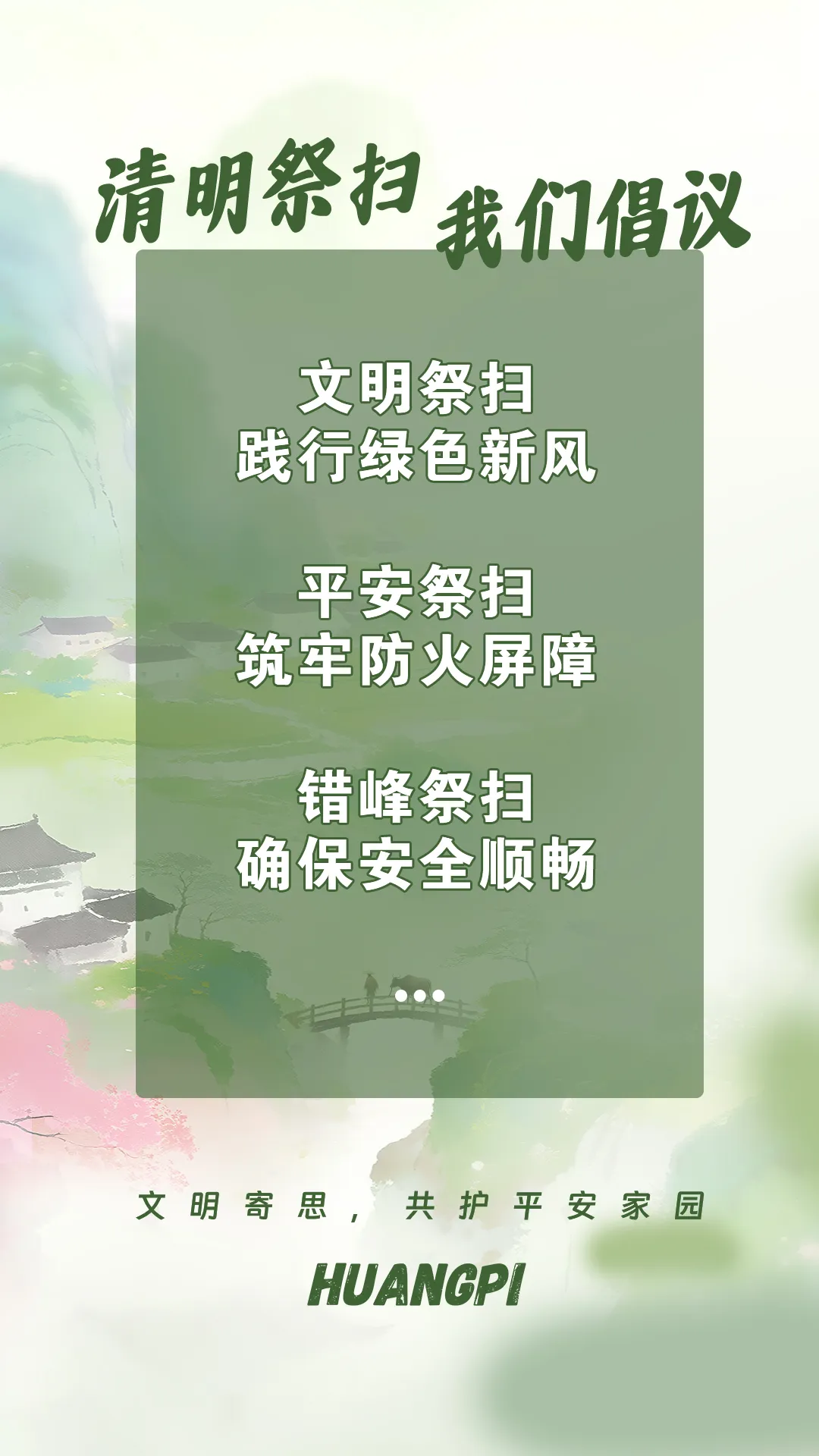 市民朋友们,守护青山绿水是我们共同的责任。让我们携手同心,以文明祭扫践行传统美德,以严格防火筑牢安全底线,共同守护平安黄陂、绿色黄陂,让清明时节风清气正、山林安宁!